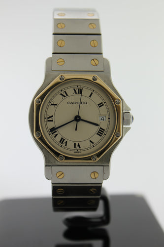 Cartier Santos Octagon 18K Yellow Gold & Stainless Steel 30mm Ivory Roman Dial 187902 - Arnik Jewellers