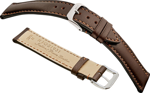 RIOS1931 is a German watch strap manufacturer founded in 1931, known for its high-quality, handcrafted leather watch accessories. The company combines traditional craftsmanship with modern techniques to produce unique and coveted watch straps. They are recognized for their use of the Swiss full-bugg technique and for their commitment to preserving skilled craftsmanship.