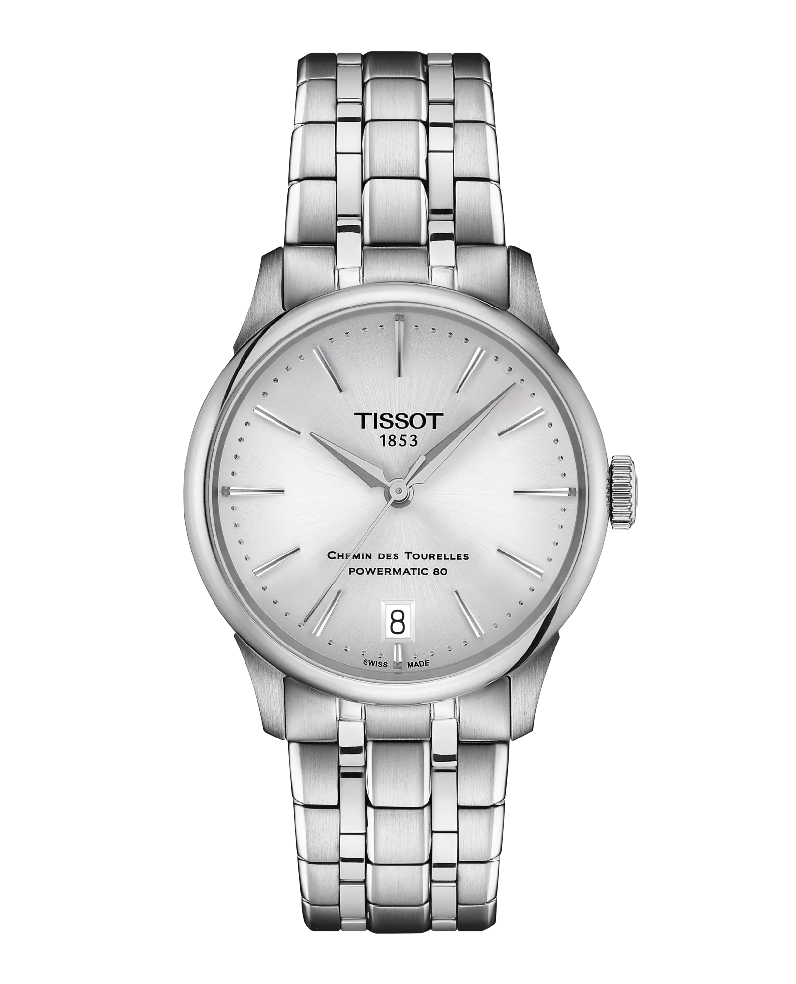 Close your eyes and think of a pure Swiss watch and you’ll see the Chemin des Tourelles. Named after the street that leads to Tissot's home in the Swiss mountains, it’s Tissot’s icon: round, classic, mechanical, ageless. Now updated and refined, this edition has a gently domed sapphire crystal that sits over a soft-sunray dial with simple, elegant baton hour markers, each faceted to catch the light in an understated but sophisticated way. And under that is the Nivachron Powermatic 80, a state-of-the art automatic mechanical movement with an 80-hour power reserve and elevated anti-magnetism. A watch for all time.