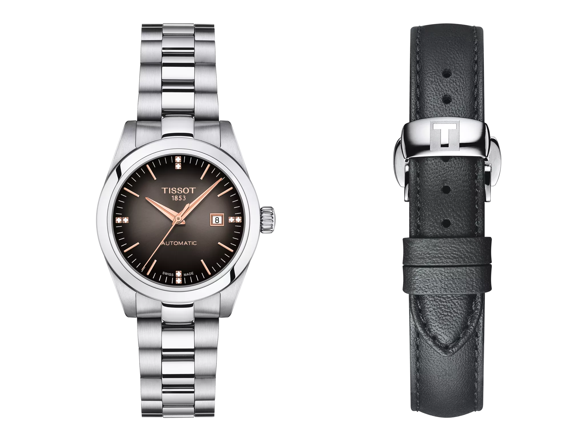 The Tissot T-My Lady can be considered as the feminine counterpart of the Tissot Gentleman, conveying all the attributes of quality watchmaking that Tissot give to its timepieces. The subtle and thinness curves of this timepiece will perfectly match with any wrist and will make it the ideal everyday companion. Its mechanical self-winding movement is regulated by a Nivachron spiral and has exceptional non-magnetic capacities. Easy to wear, each watch in this collection comes with two interchangeable bracelets, making it the perfect accessory for any outfit.