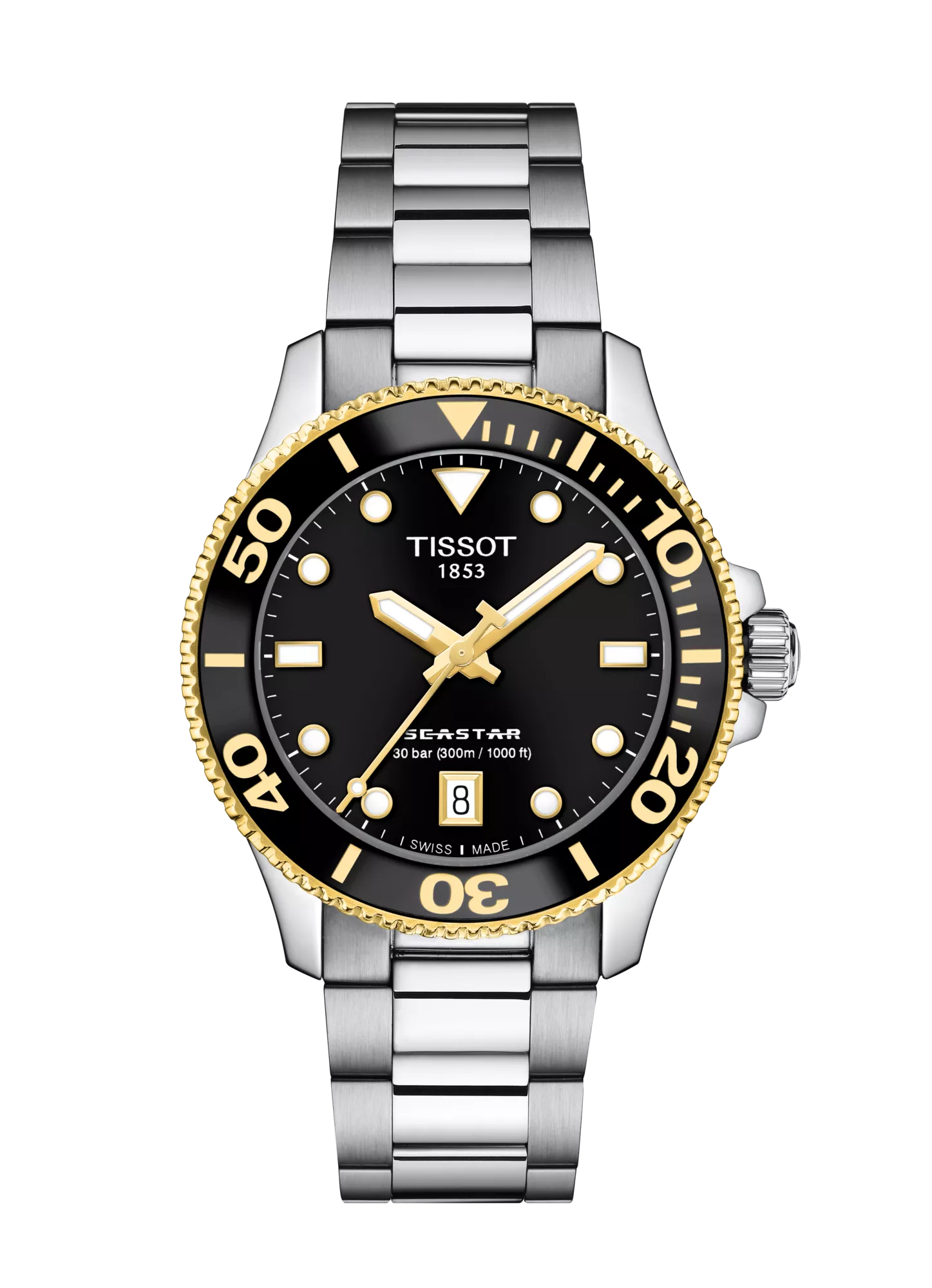 In crystal clear waters, you can see the sun's rays breaking through the surface. In your mind, only calm. On your wrist, the Seastar 1000, the door to this underwater world. It’s chic, assertive and versatile. Whether you choose the black, blue or white lacquered dial, it comes with a stainless steel case and bracelet, a uni-directional rotating bezel with a mineral glass insert, a screw-down crown and water resistance up to 30 bar (300m / 1000ft)). And if you want, you can quickly switch the bracelet for an orange, white, light-blue or black silicone strap. Change your outlook and step into another world.