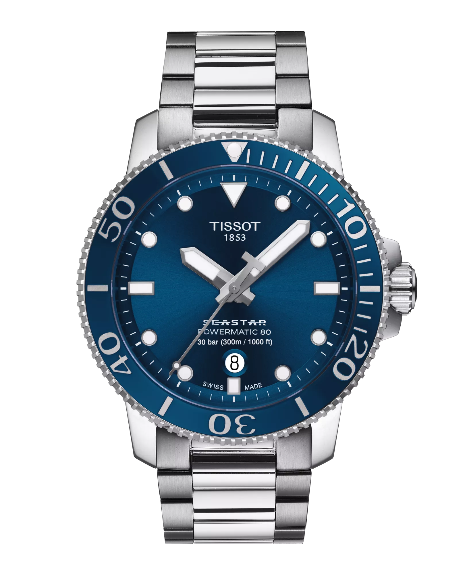 The Tissot Seastar 1000 merges style and performance without compromising either. With its water resistance up to 30 bar (300 m/1000 ft), screw-down crown and case back, it is the ultimate watersport watch, now combined with the energy of the Powermatic 80 movement offering up to 80 hours of power reserve when most of automatic movements boasts around 40 hours.