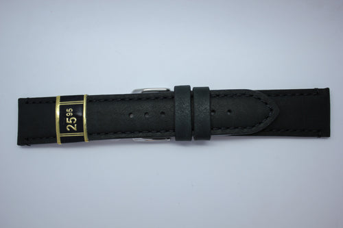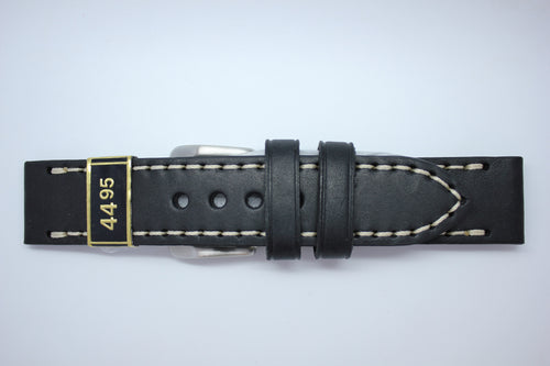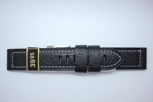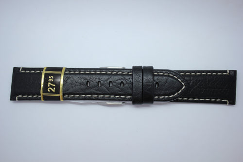 22mm Heavy Flat Stitched Buffalo Grain Leather - Black