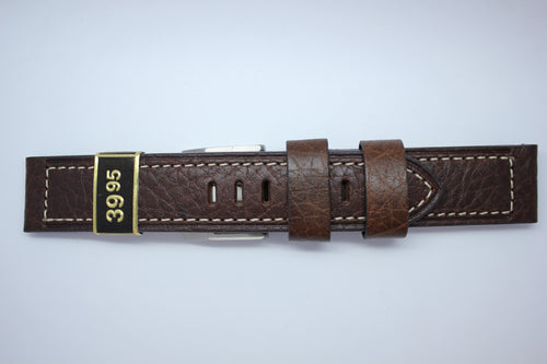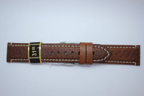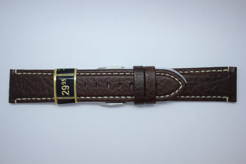 22mm Heavy Flat Stitched Buffalo Grain Leather - Brown